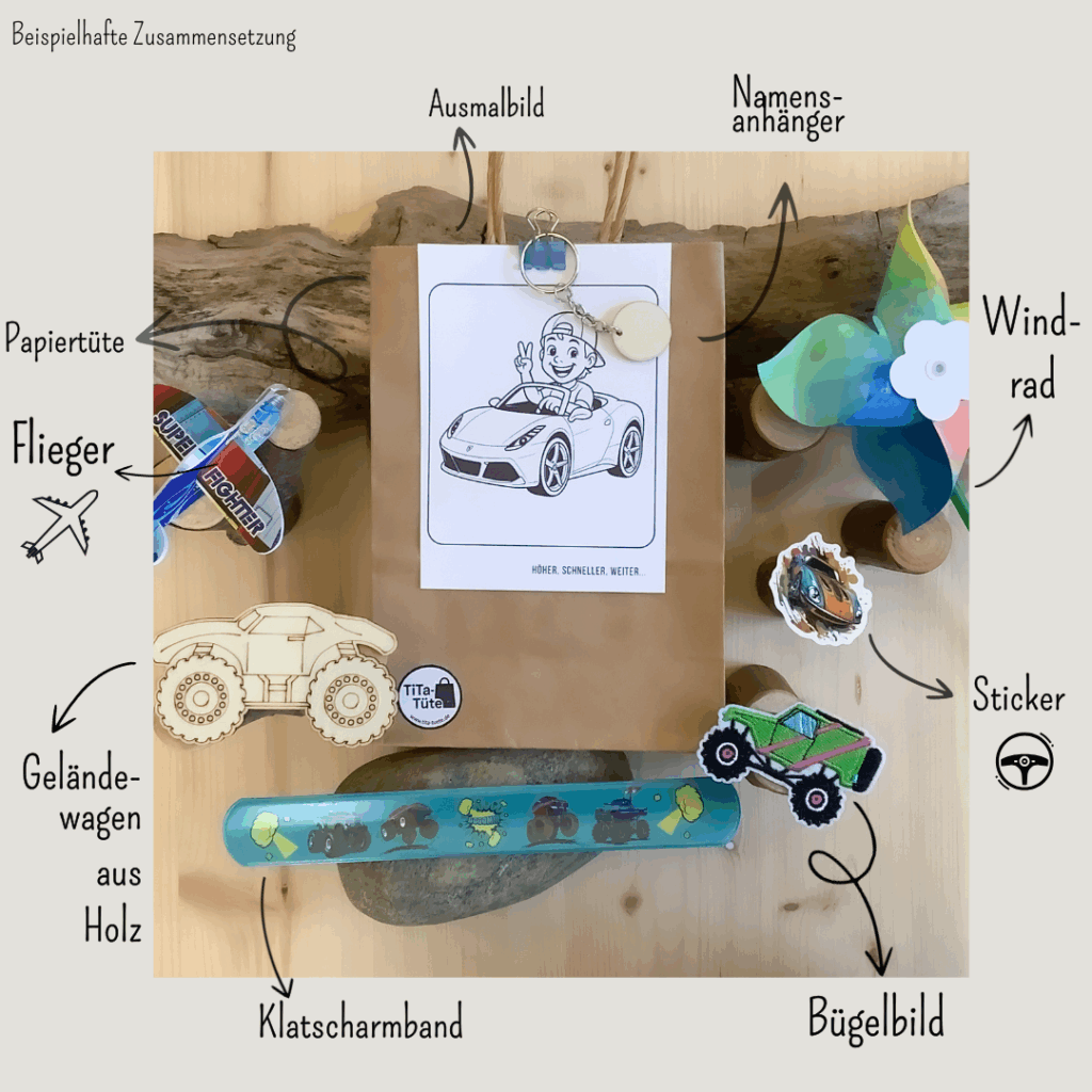 Mit TiTa-Tüte sparen Eltern Zeit und Aufwand, während Kinder sich über liebevolle Kleinigkeiten freuen. Stückzahl genauer Einkauf – nur eine Bestellung!